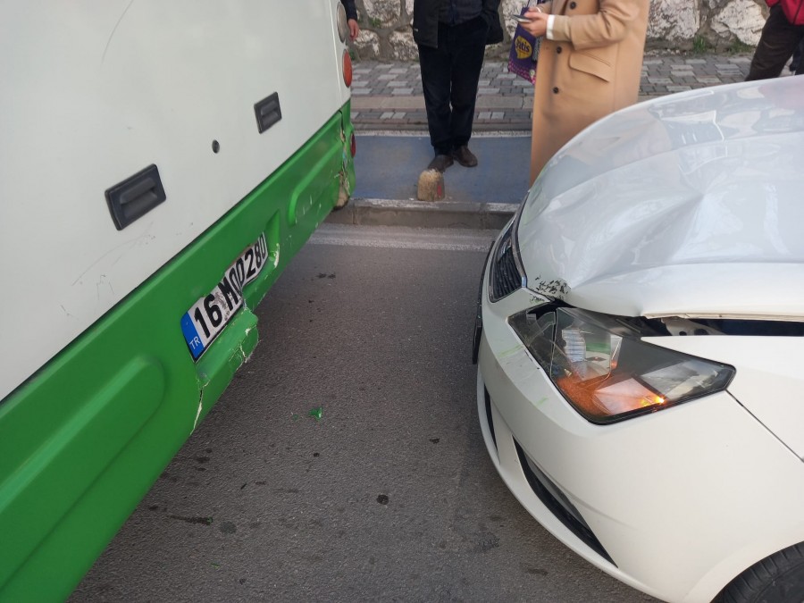 Edinilen bilgiye göre, otomobil sürücüsü seyir halindeyken halk otobüsüne arkadan çarptı.
