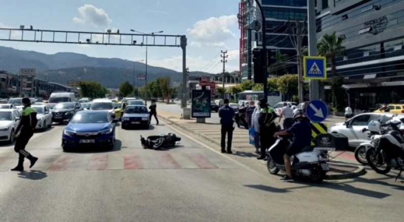 Kırmızı ışıkta geçen motosiklet Lefkoşa Caddesi istikametinden gelen 16 UXXX 46 plakalı araca çarparak devrildi.
