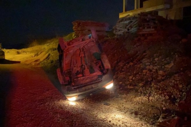 Şahıslar, bindikleri 16 LH 742 plakalı hafif ticari araç ile kaçarken inşaatın önündeki toprak yığınına çarparak takla attı.