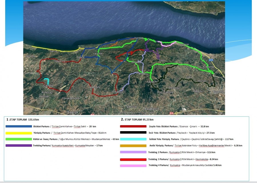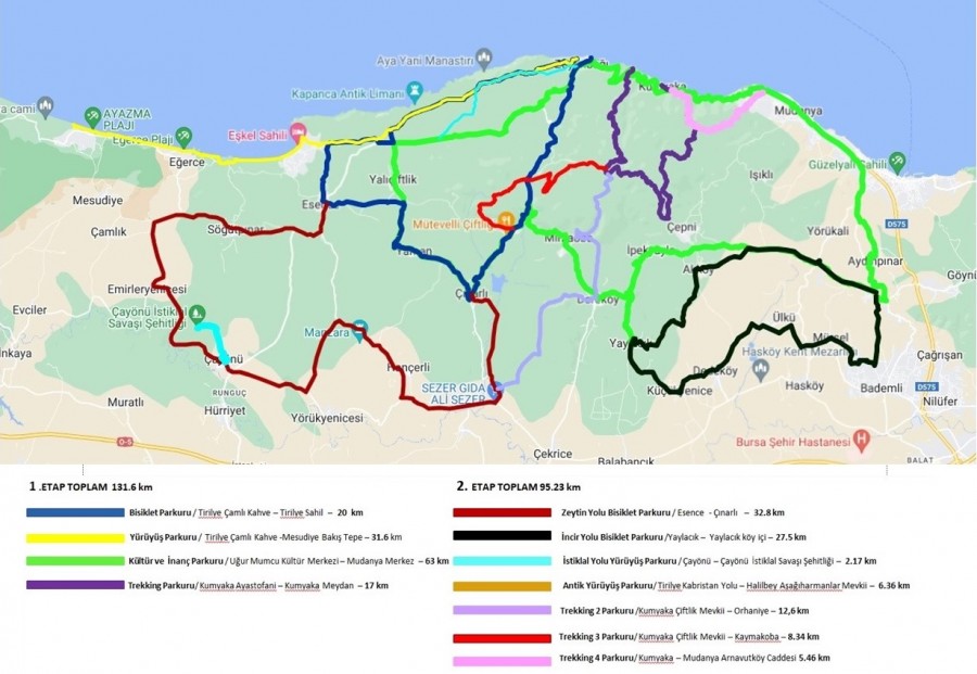 İkinci etap, 6,36 kilometrelik Antik Yol Parkuru ile başlıyor. Bu parkur, Tirilye Kabristan Yolu'ndan başlayıp Zeytinbağı Denizçiftliği Mevkii'nde sona eriyor. Ardından, 27,5 kilometrelik İncir Yolu Parkuru, Yaylacık Köy Meydanı'ndan başlayarak Küçükyenice, Dede, Ülkü, Mürsel, Bademli ve Akköy mevkilerinden geçtikten sonra yine Yaylacık Köy Meydanı'nda tamamlanıyor. 2,17 kilometre uzunluğundaki İstiklal Yolu Parkuru ise Çayönü Köy Meydanı'ndan başlayarak Çayönü İstiklal Savaşı Şehitliği'nde sona eriyor.