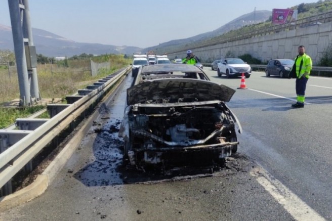 Diğer sürücülerin de uyardığı otomobilin sürücüsü aracı emniyet şeridine çekti. İçinde 3 kişi bulunan otomobilde bulunan şahıslar araçtan indikten sonra otomobil bir anda alev topuna döndü. İhbar üzerine olay yerine itfaiye ekipleri sevk edildi. Yanan otomobil itfaiye ekiplerinin müdahalesi ile söndürülürken araç kullanılamaz hale geldi.