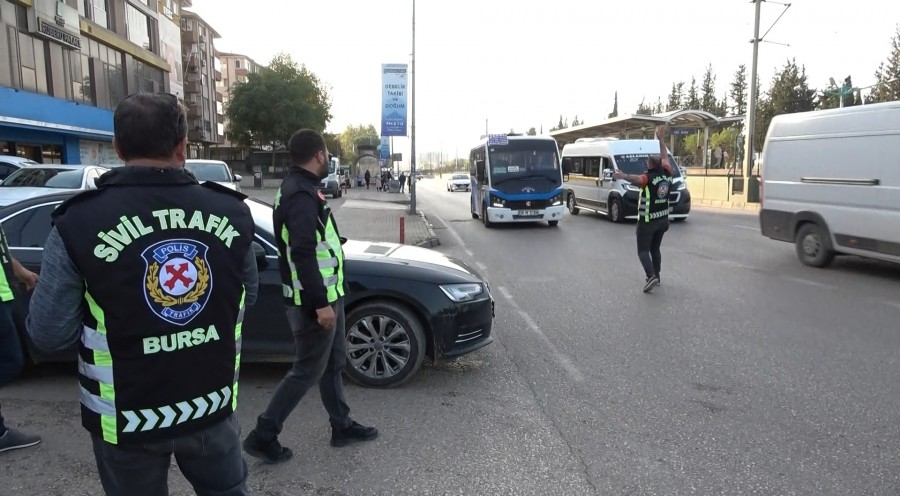 Bursa Emniyet Trafik Denetleme Şube Müdürlüğüne bağlı sivil ekip, her gün rastgele belirledikleri, minibüs, midibüs ve otobüslere biniyor. Günün herhangi bir saatinde yapılan denetimde toplu taşıma aracının sürücüsü güzergah boyunca sivil polislerce takibe alınıyor. Sivil trafik polisi, kural ihlallerini tespit edip whatsapp üzerinden ilerideki ekibe bildiriyor. Kontrol noktasındaki ekipler de kurallara uymayanları durduruyor.