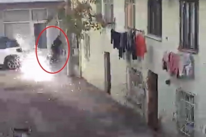 O anları sosyal medyada paylaşmak için telefonuyla kayıt almak isteyen bir kadın ise sokak lambasının altına geçti. Bu esnada ısınan kablo bir anda koparak kadının üzerine doğru düşmeye başladı.