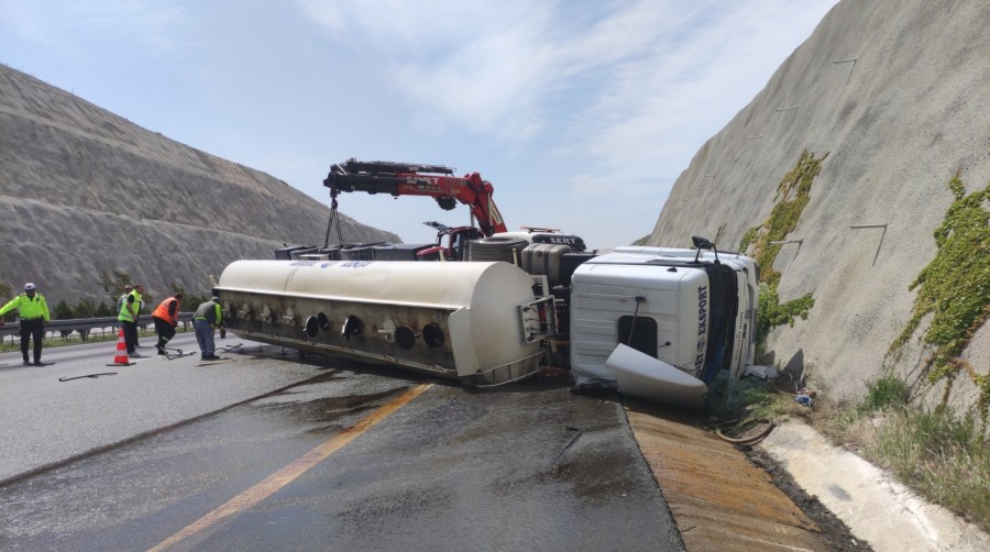 Aynı yönde seyir halinde olan Barış Başkan (38) idaresindeki 34 DHV 474 otomobile çarptı. Daha sonra bariyerlere vuran tanker devrildi.