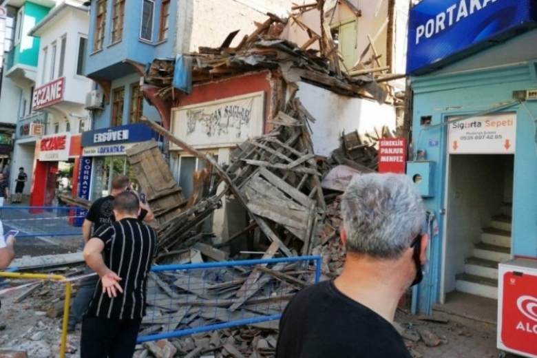 Bursa'nın Mudanya ilçesinde tarihi bina bir anda çöktü. Ortalık bir anda savaş alanına döndü.