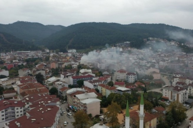 Yangın havadan drone ile görüntülendi. Yangının çıkış sebebi araştırılıyor.