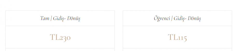 10.00-18.00 saatleri arasında hizmet veren teleferikte, tam gidiş/dönüş bilet fiyatı 230 TL, öğrenci bilet fiyatları gidiş-dönüş 115 TL olarak duyuruldu.