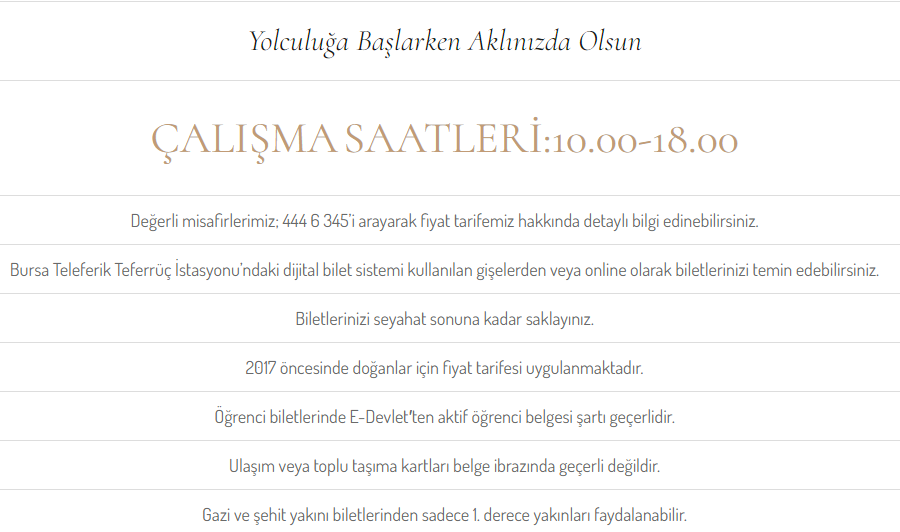 Yapılan artış, Bursa Teleferik internet sitesinde yayımlandı.