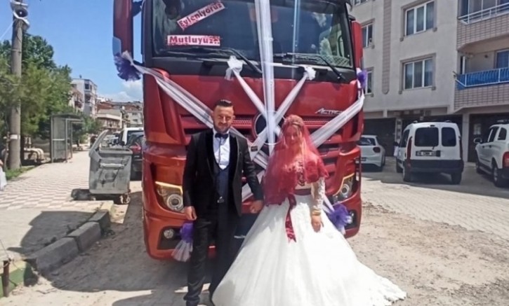 Normalleşme sürecinin ardından düğünlere yeniden izin çıkmasıyla birlikte, çiftler erteledikleri düğünlerini gerçekleştirmeye başladı. Mustafakemalpaşa ilçesinde TIR şoförü Selçuk Çiçek, gelin Gülşah Yunusoğlu'nu baba evinden, süslediği TIR'la aldı.