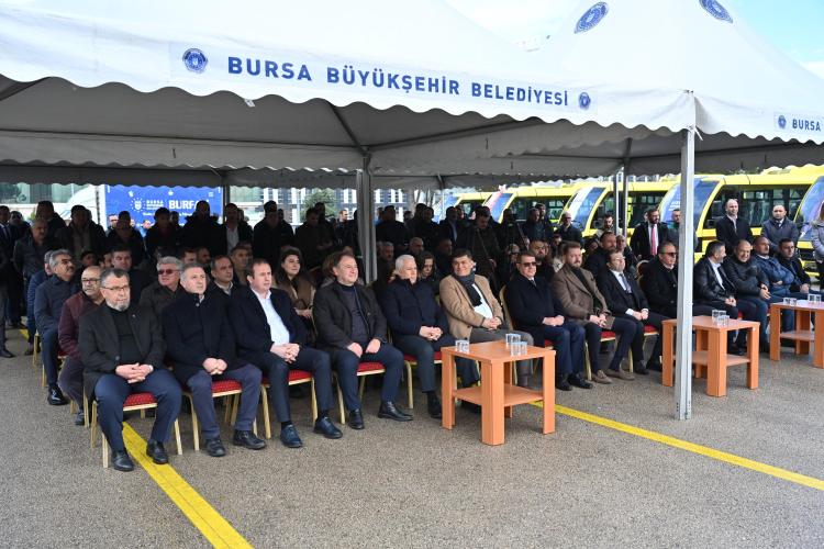 Mimar Sinan Otobüs Garajı’nda düzenlenen törene Büyükşehir Belediye Başkanı Mustafa Bozbey’in yanı sıra Büyükşehir Belediyesi Genel Sekreteri Doç. Dr. Ergül Halisçelik, BESOB Başkanı Fahrettin Bilgit, Genel Sekreter Yardımcıları Mehmet Emin Direkçi ve Mehmet Tözün Bingöl, Burulaş Genel Müdürü Fahrettin Beşli, daire başkanları, oda başkanları ve çok sayıda esnaf katıldı.