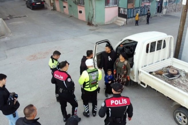 Trafik ekiplerinin yaptığı incelemede E.T.'nin ehliyetinin olmadığı anlaşıldı. E.T. ekiplere 'Abi pazara çıktık, bak malzemeler de burada. Ceza yazmayın' dese de cezadan kaçamadı.