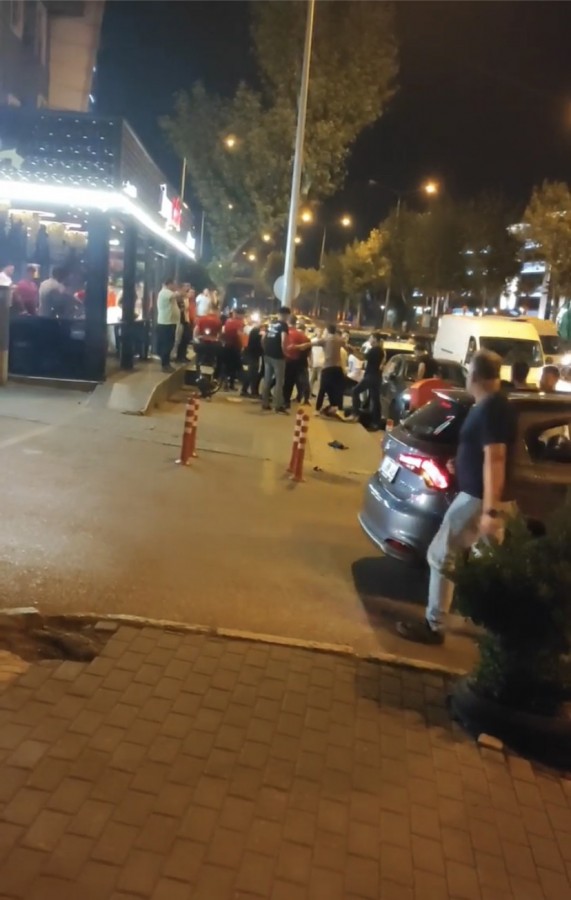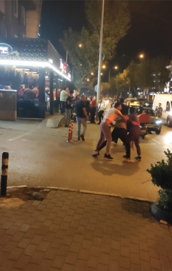 Bursa'da restoranda yemek yiyen 2 grup arasında tartışma çıktı. Tartışma kısa sürede kavgaya dönüşürken taraflardan biri diğerini acımadan darp etti.