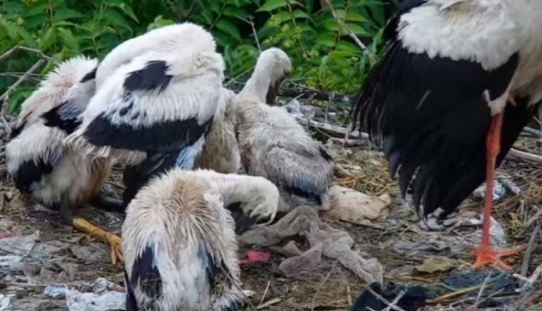 Türkiye'nin gözbebeği haline gelen Bursa'nın Karacabey ilçesine her sene göç eden Yaren leylek, son 15 günde gelişip yuva içerisinde ayaklanan yavrularıyla görüntülendi.