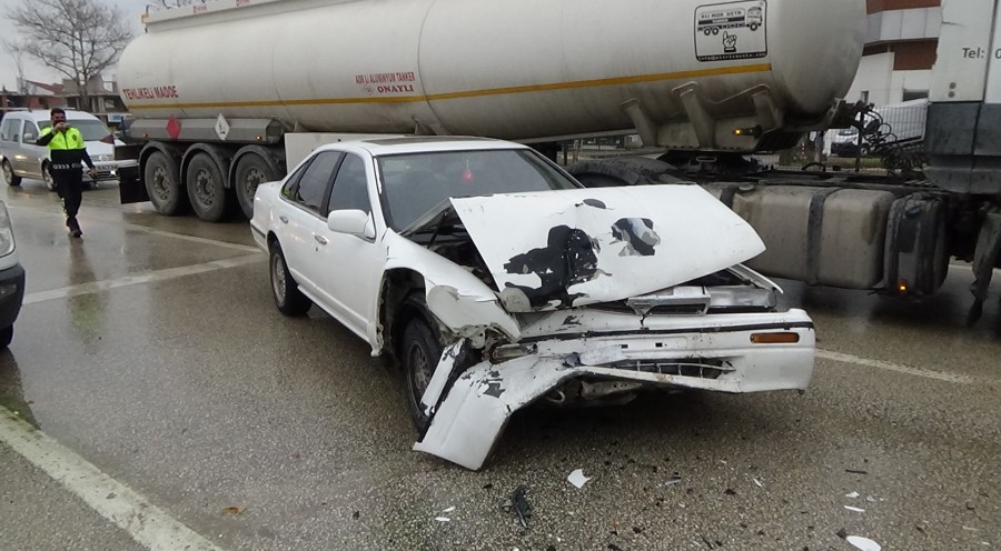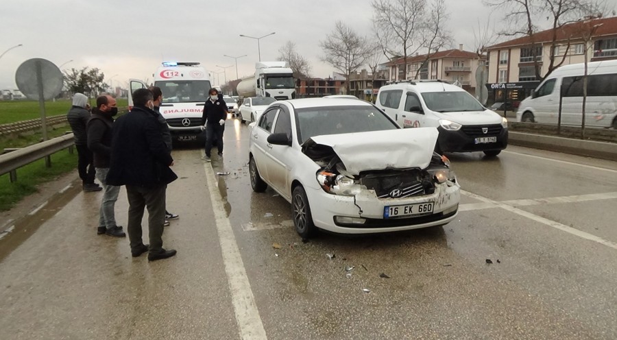 Bu sırada arkasında gelen otomobil de durdu. Ancak otomobilin arkasında gelen bir başka otomobil duran araçları geç fark edince fren yapsa da duramadı.