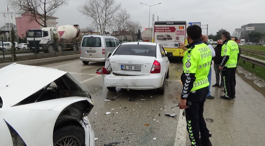 Önündeki arabaya arkanda çarptı. Duran otomobil de önündeki halk otobüsüne çarptı