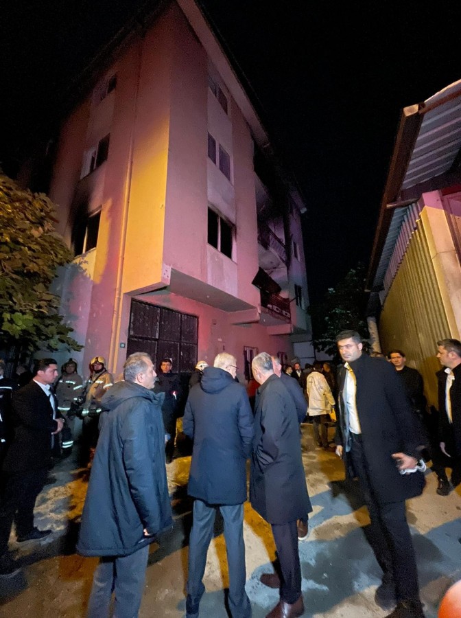 Bursa Büyükşehir Belediye Başkanı Alinur Aktaş da, " Başımız sağolsun. Gece yarısında yaşanan bir yangın. İlk kat işyeri. 4 katlı işyeri. Yangın ikinci katta olmuş ve vefatlar da orada. 9 kişilik bir aile. Bir anne ve 8 çocuk. Çocuklardan 6'sı anneye ait. Çocukların doğum tarihleri 2011 ve 2021 arasında. Savcılarımız incelemeyi yapacaklar. Sobadan kaynaklı olduğu düşünülüyor. Başımız sağolsun"diye konuştu.