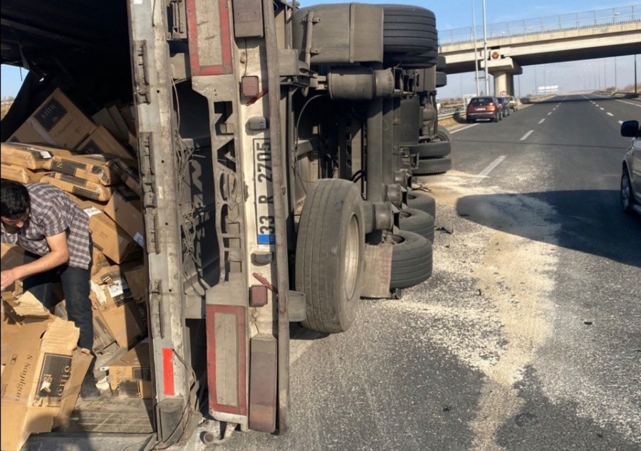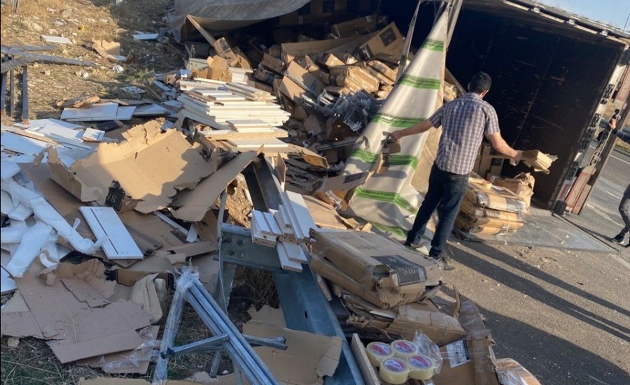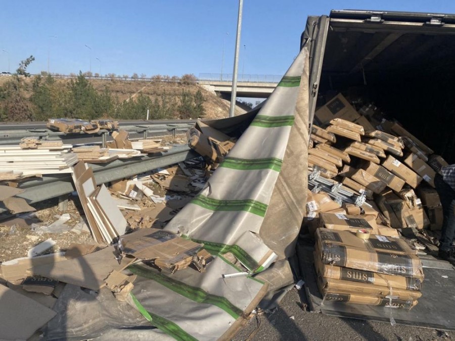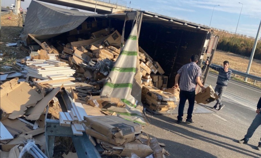 Edinilen bilgiye göre kaza, Gaziantep - Şanlıurfa otoyolunun Birecik ilçesi yol ayrımında meydana geldi. Bursa'nın İnegöl ilçesinden aldığı 26 ton mobilyayı Irak'a götüren Ömer U.'nun kullandığı 33 AZR 73 plakalı tır, iddiaya göre virajı almaya çalışırken sürücüsünün kontrolünden çıkıp devrildi. Kazada sürücü hafif şekilde yaralanırken tırın içerisindeki ambalajlı mobilya parçaları yola saçıldı. Kazayı görenlerin haber vermesi üzerine bölgeye giden sağlık ekipleri, yaralı sürücüyü ambulansa alıp olay yerinde müdahale etti.