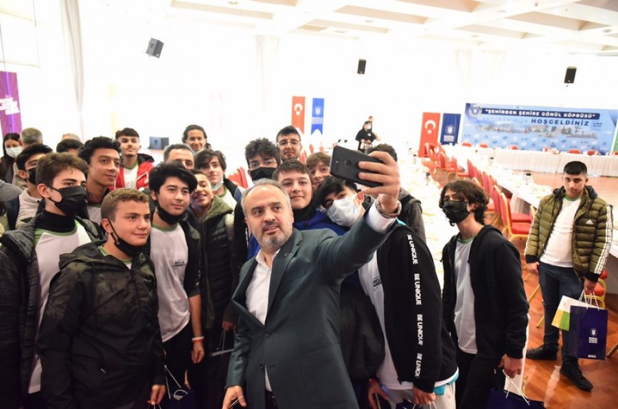 Bursa Büyükşehir Belediye Başkanı Alinur Aktaş da tüm Türkiye'yi kucaklayacak proje kapsamında Samsunlu misafirleri ile Atatürk Kongre ve Kültür Merkezi'nde bir araya geldi. Bursa Samsun Dernekleri Federasyonu Başkanı Savaş Otruş'un da katıldığı ve karşılıklı sohbet havasında geçen buluşmada Başkan Aktaş, misafirlerinin sorularını cevapladı, Bursa'ya dair sorduğu sorulara doğru cevap veren gençleri de çeşitli hediyelerle ödüllendirdi. Bursa'nın Balkanlar'dan ve Anadolu'nun değişik yerlerinden göç alarak oluştuğunu hatırlatan Başkan Aktaş, "Arzu ediyoruz ki şehrimizde yaşayan farklı şehirlilerle bağlantılı olan çocuklarla Bursa'mızı tanıştıralım. Samsun ile başladık, diğer illerle devam edeceğiz. Karşı şehir belediyesiyle irtibata geçerek 120'şerli gruplar halinde çocuklarımızı şehrimizde iki gün misafir ediyoruz. Tabii Bursa'daki yetim, öksüz ve şehit, gazi çocuklarımızı da anne babalarının memleketlerine götürüp oralarda buluşturma imkanına sahip olacağız. Yani kimsesizlerin kimi olmak, sessizlerin sesi olmak ve geleceğimiz olan yavrularımıza yatırım yapmak bizim en büyük hayalimiz ve hedefimiz. İşte onun gerçekleştiği çok özel bir projeye daha başladığımızı da ifade etmek isterim" dedi.