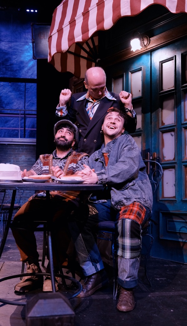 Kendi çalıştıkları özel bankayı soymaya kalkışan bir gangster çetesinin traji-komik hikâyesinin anlatıldığı oyunda; Serdar Seçkin, Serap Uluyol Karanfilci, Demet Oran, Acan Ağır Aksoy, Cenk Turan, Selçuk Veysel Zurnazanlı, Gizem Çakmak, Belgin Bilgin, Ali Bircan Teke, Efecan Baştürk, Emre Yaşa, Zeynep Yılmaz, Fatih Kasap, Serkan Çetinkaya, Cengiz Bodur, Orhan Ergün ve Nilay Çalamak rol alıyorlar. Dekor tasarımı M. Mustafa Mahdum’a, kostüm tasarımı Melahat Esra Selah’a, ışık tasarımı Sinan Mahçup’a, müzikleri Paul Burkhard’a, müzik düzenlemeleri Oktay Köseoğlu’na ve koreografisi Ewa Diyaroğlu’na ait.