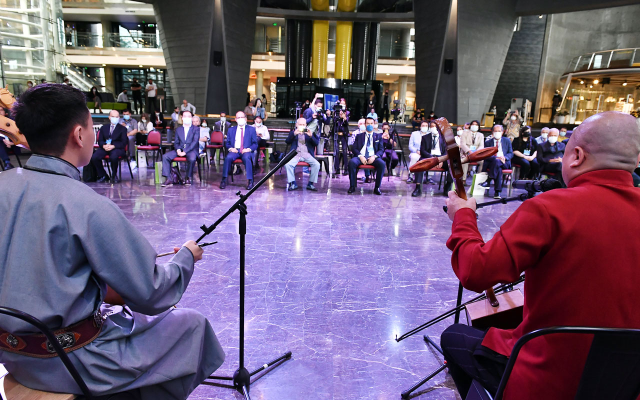 Sempozyumda oturumlara geçilmeden önce, Anadolu Halk Ozanı Yusuf Alper Güllü, sazıyla başta ‘Dombra’ olmak üzere Türk Müziği’nden eserler seslendirdi. Ayrıca, Moğol müzik grubu ‘JononMongaliçNational’ da Türk ve Moğol ezgilerinden eserler seslendirerek programa renk kattı.