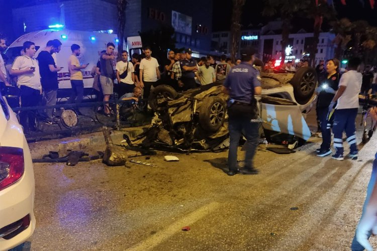 Kaza Bursa'nın Osmangazi ilçesi Fomara Meydanı'nda gerçekleşti. Yüksek hız nedeniyle direksiyon hakimiyeti kaybeden bir araç önce 16 SLV 88 plakalı bir araca sonrasında da refüje çarparak takla attı.