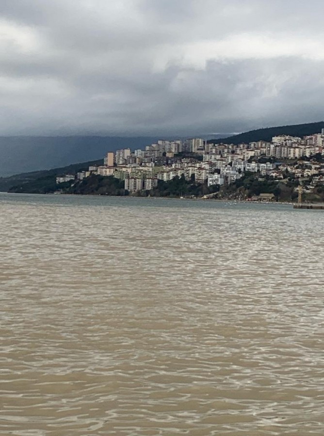 Deniz suyunun renginin değişmesinin sebebinin dün geceden itibaren etkisini gösteren sağanak yağmur olduğu öğrenildi.