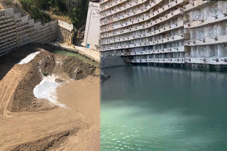 BURSA (İGFA) - Bursa’da 2006 yılında yıkılan 8 katlı İntam binasında sorunlar bitmiyor. Bursa Büyükşehir Belediyesi tarafından ihale edilerek müteahhit firma tarafından yapılan istinat duvarının ardından bina alanı dağdan gelen sularla göle döndü.