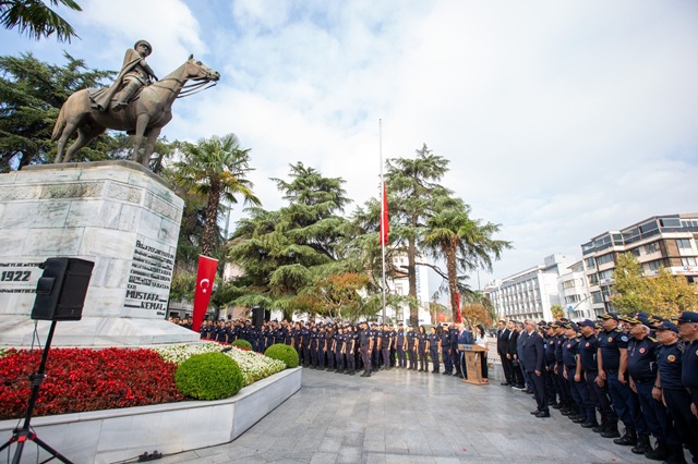 Bursa Büyükşehir Belediyesi İtfaiye Daire Başkanlığı tarafından düzenlenen törenler, Atatürk Anıtı’na çelenk sunulması ile başladı. İtfaiye Dairesi Başkanı Canalp Berkdemir ve itfaiye erlerinin saygı duruşunda bulunmasının ardından Büyükşehir Belediyesi Bandosu eşliğinde İstiklal Marşı okundu.