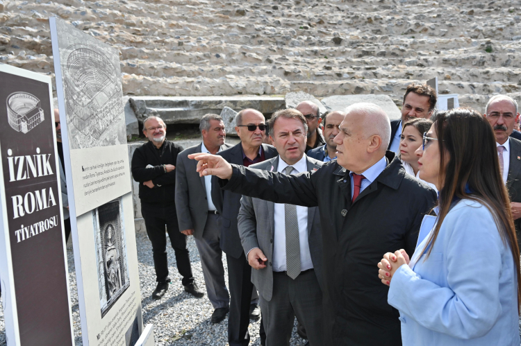 İznik’in tarih öncesinden günümüze uzanan bir kent olduğunu hatırlatan Başkan Bozbey, Antik Çağ’dan bugüne dek kent planının neredeyse hiç bozulmadığını, pagan ve Hıristiyanlık dönemlerinin en önemli olaylarına sahne olduğunu ve Osmanlı’nın ilk kültür ve eğitim merkezlerinden biri olarak günümüze taşındığını anlattı. İznik’in her köşesinin tarihe açılan birer kapı olduğunu belirten Başkan Bozbey, “İznik, Roma’nın görkemiyle büyüdü, Bizans’ın ruhunu taşıdı ve Osmanlı’nın ihtişamıyla harmanlandı. Medeniyetlerin kavuştuğu İznik, hepimize geçmişin izinde geleceği inşa etme sorumluluğunu hatırlatıyor. Bursa Büyükşehir Belediyesi olarak İznik’i yaşayan ve büyüyen bir kültürel miras merkezi haline getirmeyi ve sekteye uğrayan UNESCO sürecini yeniden canlandırmayı hedefliyoruz. Çalışmalar, sadece İznik için değil, insanlığın ortak hafızası için de büyük bir önem taşımaktadır. Roma Tiyatrosu, 43 yıl aradan sonra Kültür ve Turizm Bakanlığı’nın çabaları ve Bursa Büyükşehir Belediyesi’nin desteğiyle ücretsiz olarak kapılarını açtı” dedi.