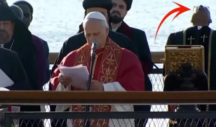 Ayin sırasında Papa'nın hemen arkasında duran bir din adamının tuhaf el ve vücut hareketleri, törene damga vurdu. Canlı yayına yansıyan o görüntülere kimse bir anlam veremedi.