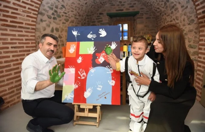 Yıldırımlı çocuklar, bilimde parlayan Yıldırım’ın marka yüzü olan Molla Yegan Çocuk Üniversitesi’nde uzay yolculuğuna çıkarak astronotların 24 saatine tanıklık ediyor. Yeni eğitim öğretim dönemiyle birlikte ilkokul, ortaokul, anaokulu ve rehabilitasyon merkezlerinin ziyaret ettiği Çocuk Üniversitesi’nin bu haftaki misafirlerinden biri de Hüma Hatun Özel Eğitim Anaokulu öğrencileri oldu. Yıldırım’ın özel bireyleriyle bir araya gelen Yıldırım Belediye Başkanı Oktay Yılmaz, mutfak atölyesinde katılımcılarla kurabiye süsledi. Deneyim alanını çocuklarla birlikte gezerek birbirinden eğlenceli ve öğretici interaktif içerikleri gözlemleyen Başkan Oktay Yılmaz, özel bireylerin boyama etkinliğine katıldı. Çocukların en çok beğendiği yer ise sergi alanındaki düzenekler oldu. Yaklaşık 2 saat süren uzay macerası ile katılımcılar eğlenirken öğrendi.