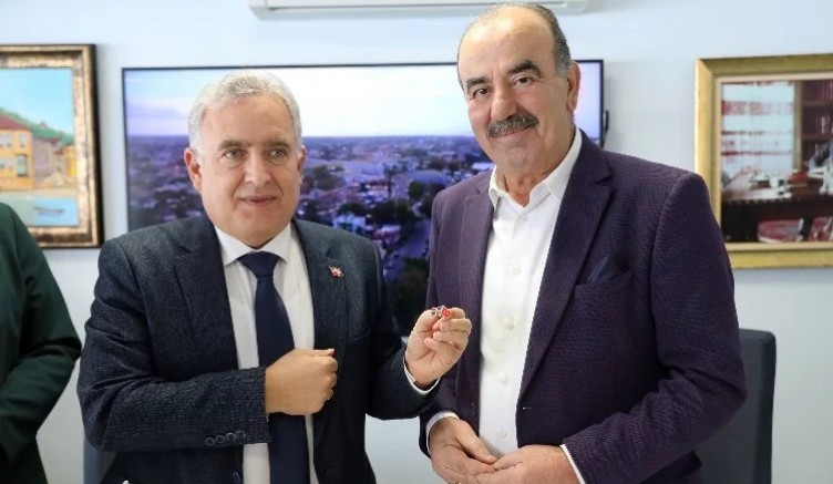 Ankara Büyükelçisi Elvis Antonio Alam ön protokolün ardından günün anısını Başkan Hayri Türkyılmaz’a iki ülke bayrağının bulunduğu rozet hediye etti.