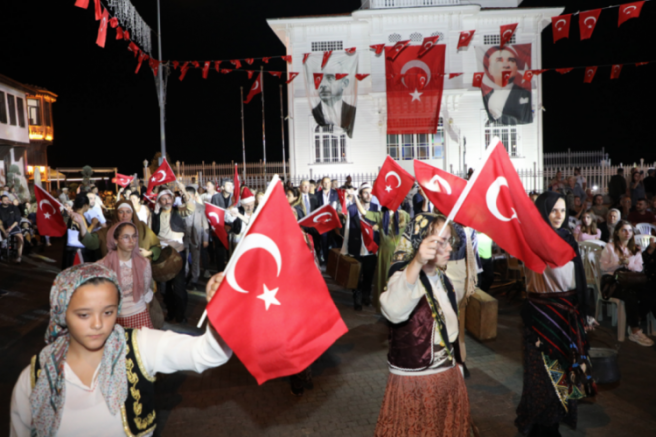 Mudanya’nın simge sokaklarından Girit Mahallesi’nde yapılan yürüyüş, Kurtuluş Savaşı’nın ruhunu ve zaferin diplomasiyle taçlandığı o tarihi günleri yeniden canlandırdı. Bu özel yürüyüş için sandıklarından geçmişe ait giysi ve eşyalarını çıkartan Mudanyalılar ellerinde bayraklarla Girit Sokağı’ndan Mütareke Meydanı’na kadar duygu yüklü bir yürüyüş yaptılar. Barışın ve bağımsızlığın sembolü Mudanya’yla gurur duyduklarını dile getiren Mudanyalılar, yürüyüşün ardından Mütareke Meydanı’nda Atatürk’ün sevdiği şarkıları seslendiren Bursa Büyükşehir Belediyesi Türk Sanat Müziği korosuna hep birlikte eşlik ettiler. Cumhuriyetimizin kurucusu Mustafa Kemal Atatürk’ün hatırasını yaşatmak adına düzenlenen konser, izleyicilerden büyük beğeni topladı ve duygusal anlara sahne oldu.