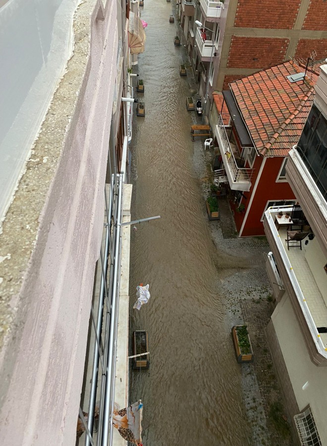 Sabah saatlerinde Mudanya'da etkisi gösteren sağanak yağış Mudanya'da afet yaşanmasına neden oldu, hayat felç oldu. İlçenin yüksek kesimlerinden taş parçaları sahile doğru indi.