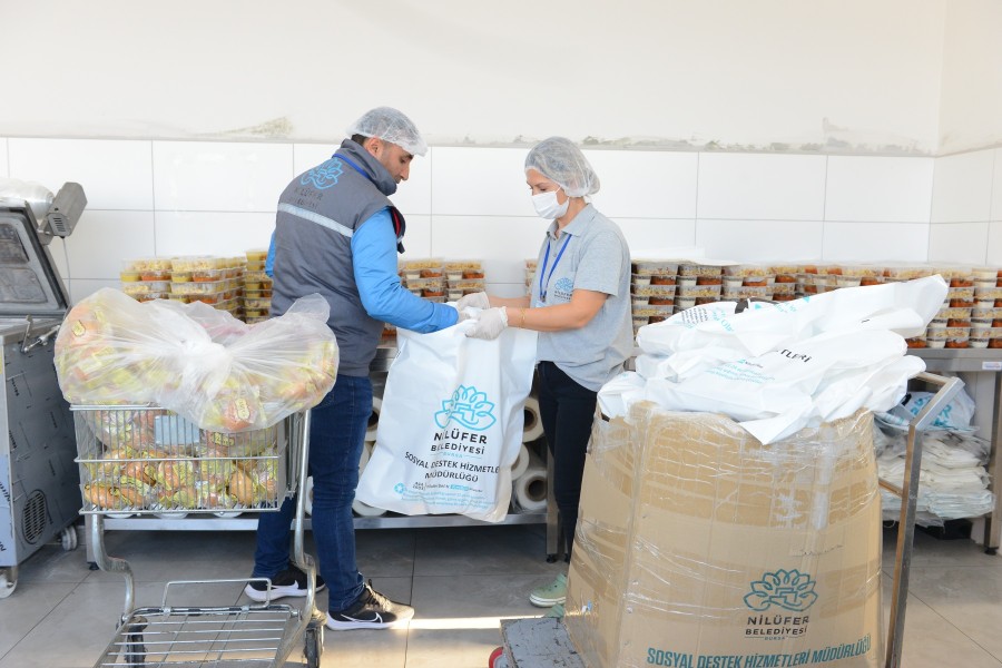 Aşevinde hazırlanan sıcak yemekler, her gün iki öğün halinde belirlenen ihtiyaç sahibi hanelere de ulaşıyor. Öğle ve akşam olmak üzere günde iki öğün sıcak yemek, Nilüfer Belediyesi görevlileri tarafından ailelere ulaştırılıyor. Ekipler her gün toplam 700 öğün yemeği, kentin dört bir yanındaki ihtiyaç sahiplerinin evlerine bırakıyor.