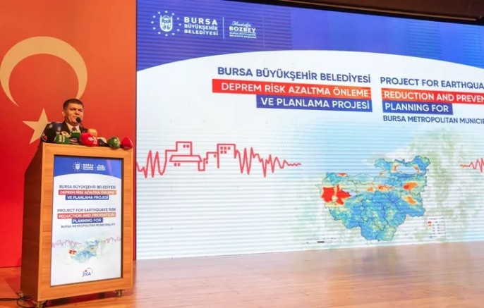 Birinci derece deprem kuşağında yer alan Bursa'nın dirençli ve sürdürülebilir bir kent olması adına çalışmalarını sürdüren Büyükşehir Belediyesi, JICA ile yürüttüğü ‘Deprem Risk Azaltma ve Önleme Planlaması Projesi’ni tüm hızıyla sürdürüyor. Kentin dirençlilik haritasını ortaya koyan projenin önemli olduğunu her fırsatta dile getiren Bursa Büyükşehir Belediyesi Başkanı Mustafa Bozbey, proje ile kenti depreme karşı güvenli, dirençli ve sürdürülebilir hale getirmek için önemli bir adım atıldığını belirtti. Büyük felaketlerden yeterince ders alındığını söylemenin zor olduğunu söyleyen Başkan Bozbey, deprem gerçeğiyle yaşayan bir ülke olarak, bilim insanlarının uyarılarına kulak vermek gerektiğini, kentleri depreme dayanıklı hale getirmek için daha kararlı adımlar atılması gerektiğini vurguladı.