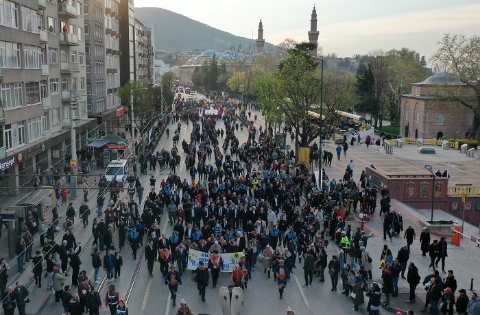 Konuşmaların ardından protokol ve vatandaşlar, Saltanat Kapı’dan başlayarak Ulucami önünden Panorama 1326 Bursa Fetih Müzesi’ne kadar Fetih Yürüyüşü gerçekleştirdi. Yürüyüş sırasında “Geçmiş olsun Türkiyem”, “Yaraları Birlikte Saracağız”, “İyileşeceğiz, Güçleneceğiz” pankartları ile deprem bölgesi de unutulmadı. Yürüyüş sonrasında Fetih Müzesi’nin bahçesinde vatandaşlara iftar yemeği ikram edildi.