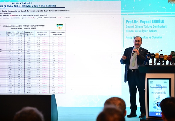 Bursa’yı çok sevdiğini ve şehir ile arasında gönül bağı olduğunu vurgulayan Orman ve Su İşleri eski Bakanı Veysel Eroğlu; “Evet bir iklim değişikliği ile karşı karşıyayız. Ancak doğru planlama yapılırsa ne Bursa’da ne de Türkiye’de herhangi bir su sorunu yaşanmaz. Yeşil Bursa’daki mevcut su yatırımlarının yüzde 90’ı bizim hükümetlerimiz döneminde gerçekleştirilmiştir. Sayın Cumhurbaşkanımızın da Bursa’da projelerin aksamaması için özel talimatı var. Dağdibi, Kocayayla, Ağlaşan Kayacık, Gözede, Yalıçiftlik, Çınarcık, Altıntaş, Karıncalı, Nilüfer, Boğazköy, Çiçeközü, Gökçesu barajları bizim dönemimizde Bursa’ya kazandırıldı. Bakınız 23 yılda Bursa’ya; 25 adet baraj, 12 adet HES, 54 adet sulama tesisi, 4 adet içme suyu tesisi, 27 adet taşkın önleme tesisi ve 5 adet arazi toplulaştırma projesi olmak üzere toplamda 152 adet tesis kazandırdık. Bu tesislerin yatırım maliyeti ise yaklaşık 76 milyar TL. Ancak bu yatırımlara rağmen Bursa’nın yaşadığı sıkıntılar ortada. Yakın vadede bu sorunu aşmak için Çınarcık barajı devreye alınmalıdır. Çınarcık Barajı’ndan su alınıp arıtma tesislerine taşınmalı. Bu su da Bursa’ya verilmelidir. Böylece Bursa’nın su sorunu kalmaz” ifadelerini kullandı.