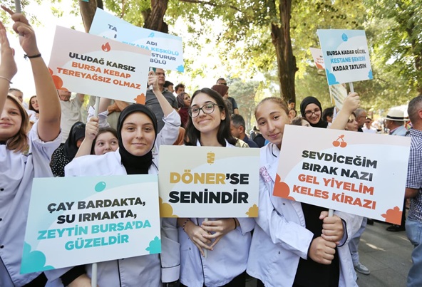 Bursalıların damaklarında yeni tatlar bırakmaya hazırlanan festival, Merinos B Kafe önünden başlatılan kortej yürüyüşüyle devam etti. Başkan Mustafa Bozbey ve eşi Seden Bozbey, CHP Parti Meclis Üyesi ve Bursa Milletvekili Nurhayat Altaca Kayışoğlu, Bilecik Belediye Başkanı Melek Mızrak Subaşı, ilçe belediye başkanları, Büyükşehir Belediyesi bürokratları, turizm profesyonelleri, şefler ve vatandaşlar Büyükşehir Belediye Bandosu eşliğinde ana sahneye kadar yürüdü.