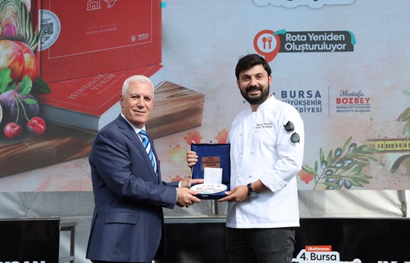 Konuşmaların ardından Başkan Mustafa Bozbey tarafından ‘Lezzet Durağı’ projesine destek olan Bursa Gıda Mühendisleri Odası Başkanı Serkan Durmuş’a ve ‘Tescilden Tabağa Bursa Gastronomisi’ kitabının yazarı Fatih Yıldırım’a plaket verildi. ‘Rotam Bursa Lezzetleri Ulusal Fotoğraf Yarışması’ jüri üyelerine de plaket veren Başkan Mustafa Bozbey, daha sonra yarışmanın birincisi Veysel Kaya, ikincisi Emrullah Akgün ve üçüncüsü Aygül Harmancı’ya ödüllerini takdim etti.