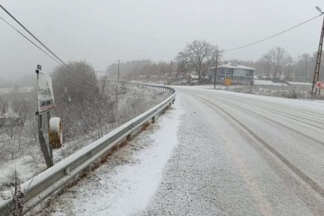 Bursa'nın Keles ilçesinde gece başlayan yağmur, ilerleyen saatlerde yerini kar yağışına bıraktı.