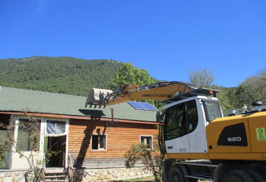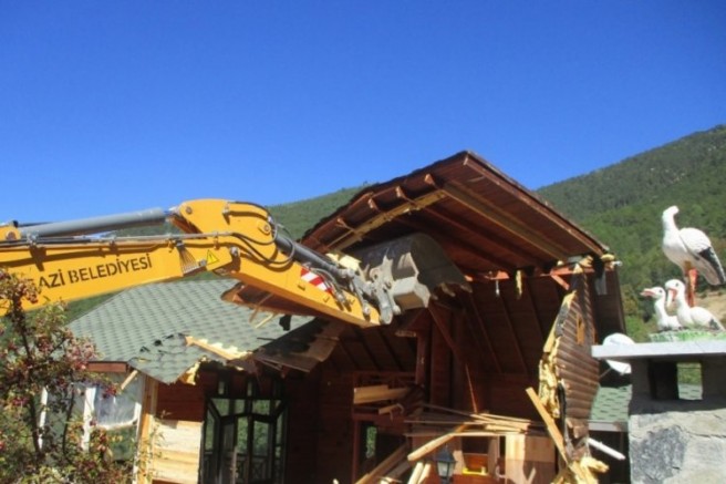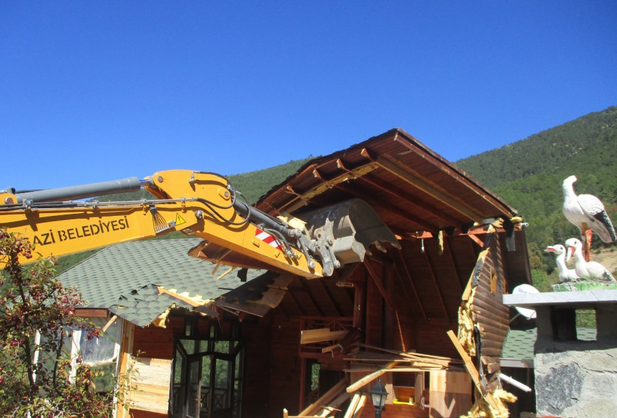 Osmangazi Belediyesi, kent kimliği ve dokusuna zarar veren kaçak yapılar ile mücadelesini aralıksız sürdürüyor. Osmangazi Belediyesi Yapı Kontrol Müdürlüğü ekipleri tarafından kaçak olduğu belirlenip hakkında yıkım kararı alınan Bağlı Mahallesi'ndeki ruhsatsız bungalov tarzı ahşap ev, iş makinesi ile yıkıldı.