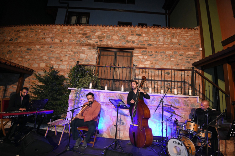 Şadırvanlı Han Eğitim Akademisi’nin bahçesinde gerçekleştirilen konser ile batının cazı ve doğunun etnik müzikleri gibi birbirinden farklı türler arasında kültürel bir köprü oluşturuldu. Katılımcılara yıldızların altında müzik dinleme imkanı sunan konsere, Bursalı sanat severler büyük ilgi gösterdi. Cazla etnik müziğin harmanlandığı konserde, ney/vokalde Sercan Peşan, piyanoda Görkem Ediz, kontrbasta Mert Kocamemiş ve davulda Emre Aydın sahne aldı. Bursalı müzikseverler, doğu-batı ezgilerini ustaca kullanan sanatçıları ilgiyle dinledi.