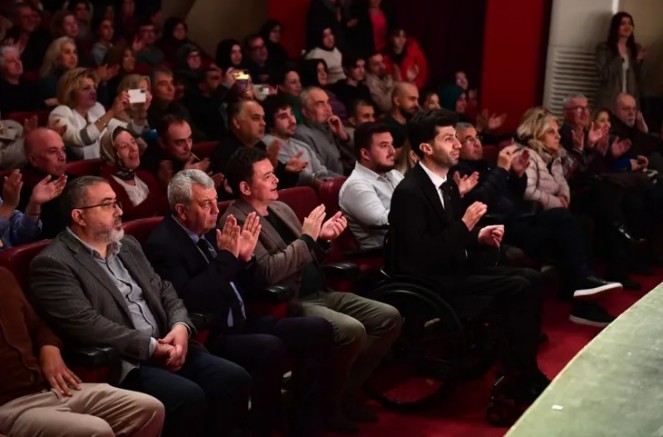 Derin anlamlar taşıyan oyunu Osmangazi Belediye Başkanı Erkan Aydın’ın yanı sıra Bursa Vali Yardımcısı Mustafa Güney, Osmangazi Belediye Başkan Yardımcısı Mutlu Esendemir, CHP Bursa İl Başkan Yardımcıları İsmail Altay ve Olcay Musaoğlu, Osmangazi Kent Konseyi Genel Sekreteri Mutlu Çınar, Osmangazi Engelliler Meclisi Başkanı Orhan Koca ve meclis üyeleri, Osmangazi Muhtarlar Derneği Başkanı Burhan Mandacı, Osmangazi Belediye Meclis üyesi Mehmet Kalır, STK temsilcileri, Osmangazi Kent Konseyi üyeleri ile vatandaşlar ilgi ile takip etti.