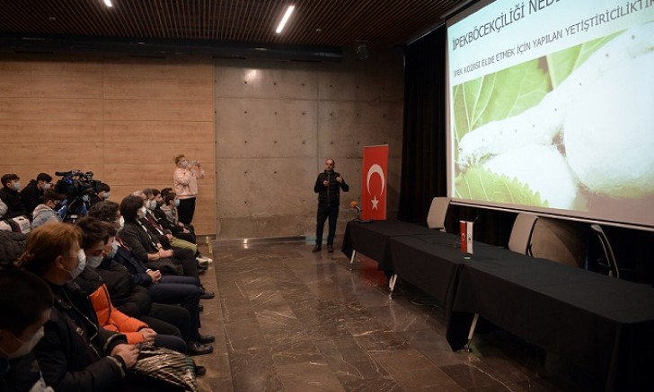 Kurs eğitmeni Süleyman Akyüz, Dr. Rüştü Burlu ÇES öğrencilerine ‘ipek böcekçiliği nedir, ipek böceği nasıl bir canlıdır, ipek böceği ne ile beslenir ve ipek böceği nasıl bir canlıdır’ konularında bilgiler verdi.