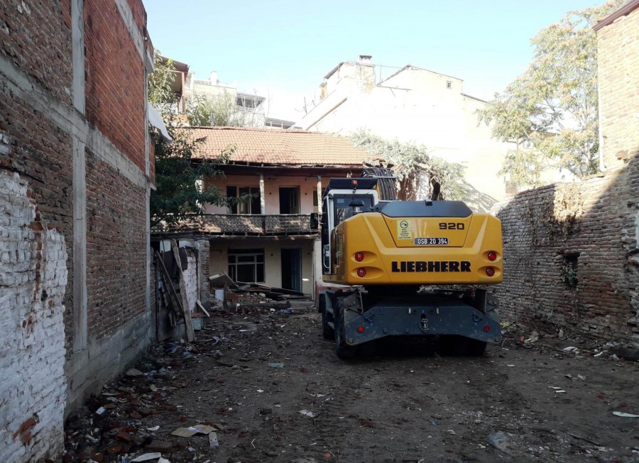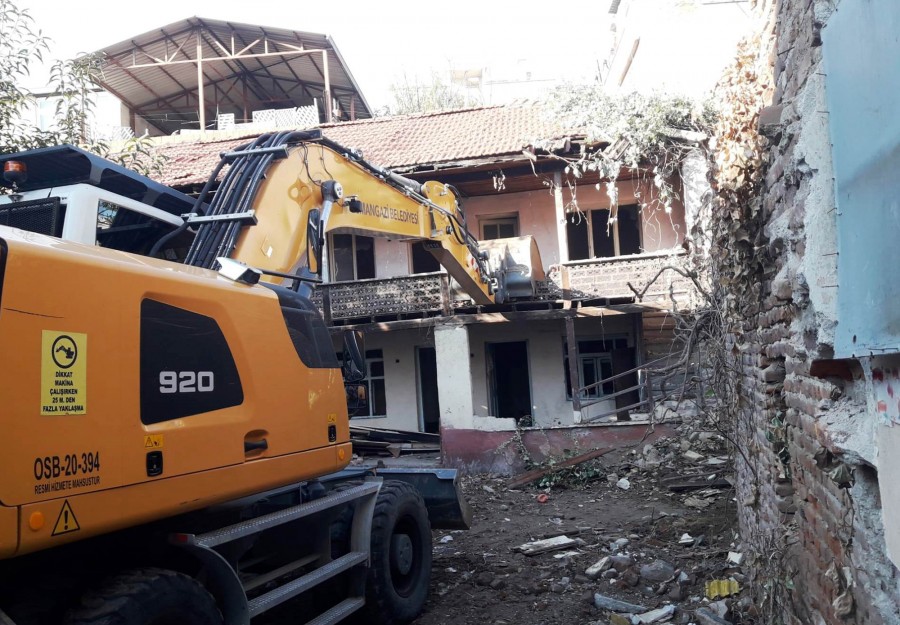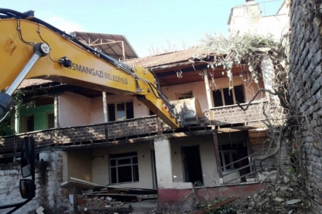 Bursa'da Osmangazi Belediyesi vatandaşların can güvenliğini tehdit eden ve illegal kullanıma uygun ortam oluşturacak nitelikte olan metruk binaların ilçede yıkımını sürdürüyor.