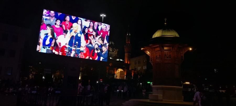 Osmangazi Belediyesi de bu önemli maç için 15 Temmuz Demokrasi Meydanı'na dev ekran kurdu. Meydanı dolduran vatandaşlar, maç öncesi okunan İstiklal Marşı'na hep bir ağızdan eşlik ederken, çekişmeli geçen müsabakayı büyük bir heyecan ile takip etti.