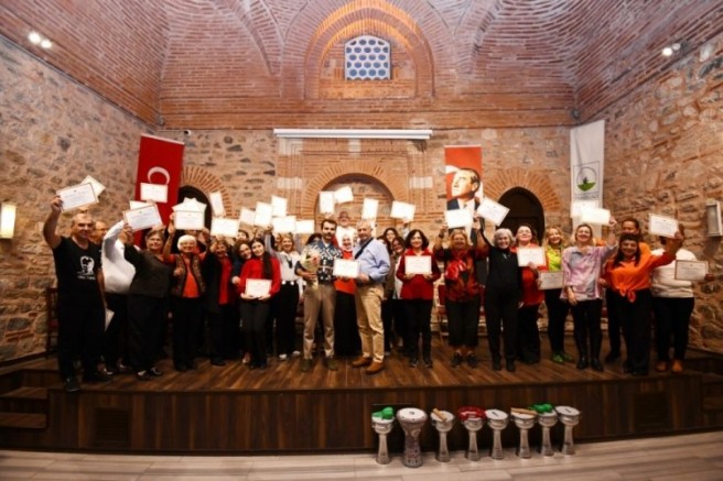 Ritim Atölyesi'nin ikinci dönemini başarıyla tamamlayan ve sertifikalarını alan kursiyerler, bu imkanı kendilerine sunduğu için Osmangazi Belediye Başkanı Erkan Aydın'a teşekkür etti.