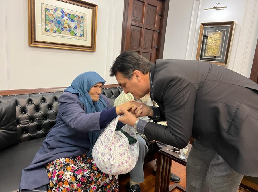 Başkan Dündar da yaşlı çifti AK Parti Osmangazi İlçe Başkanı Ufuk Cömez ile birlikte makamında ağırladı. Günay çifti hazırladıkları biner TL para ile içinde kendi elleriyle ördükleri kışlık kıyafetlerin olduğu bohçayı Başkan Dündar’a teslim etti.