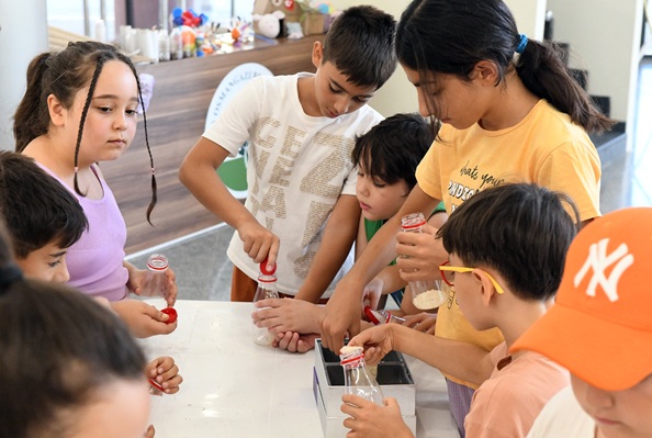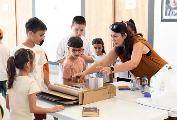Etkinliği yöneten Yaratıcı Drama ve Özel Eğitim Öğretmeni Gülşah Günay, çalışmanın amacının çocuklara hem doğa bilinci hem de iş birliği kültürü kazandırmak olduğunu belirterek, “Yaşar Kemal’in Teneke isimli eserinden yola çıkarak bir toprak atölyesi gerçekleştirdik. Eserde sivrisineklerle mücadele eden, çeltik tarlaları olan bir köyün dönüşümünü ve adalet duygusunu işliyoruz. Drama canlandırmaları yaptık, ritim aletleri ürettik, çocuk yogası ile denge çalıştık, resim yaptık. Çoraptan sivrisinek yapma etkinliğimizde ise kitaptaki köyde yaşanan sivrisinek sorununa gönderme yaptık. Parkur etkinliği ile özgüvenlerini artırmayı ve takım çalışmasını güçlendirmeyi hedefledik. Tüm malzemeler geri dönüştürülebilir materyallerden seçildi” dedi.